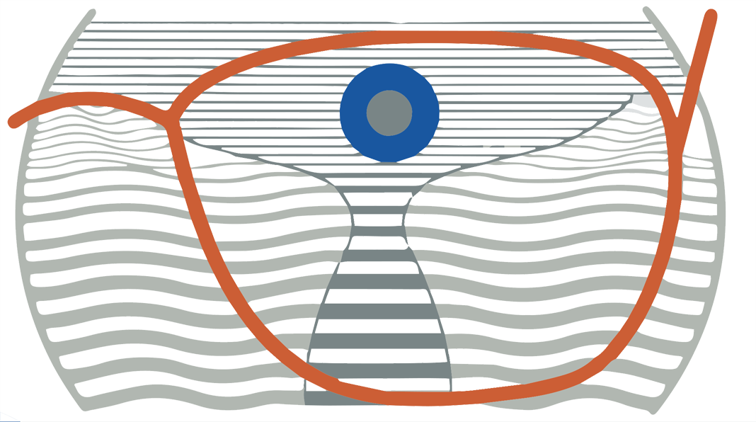 - Zorné polia majú skôr lievikovitý tvar ako tvar presýpacích hodín.